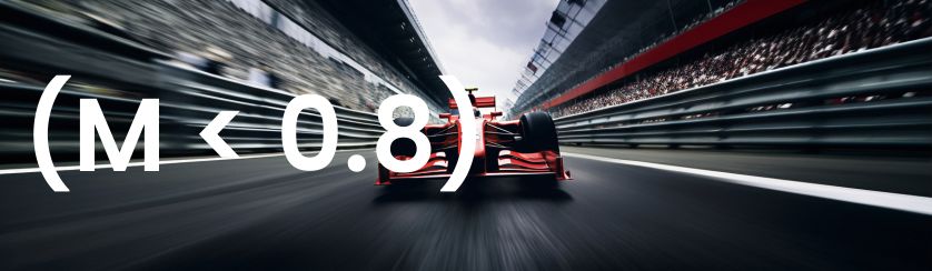 In subsonische windtunnels (M < 0,8) (<987,84 km/u) kunnen samendrukbaarheidseffecten worden genegeerd omdat de luchtstroom lager is dan de geluidssnelheid. Om hoge snelheden te bereiken is het dwarsdoorsnedeoppervlak van de testsectie doorgaans klein.
